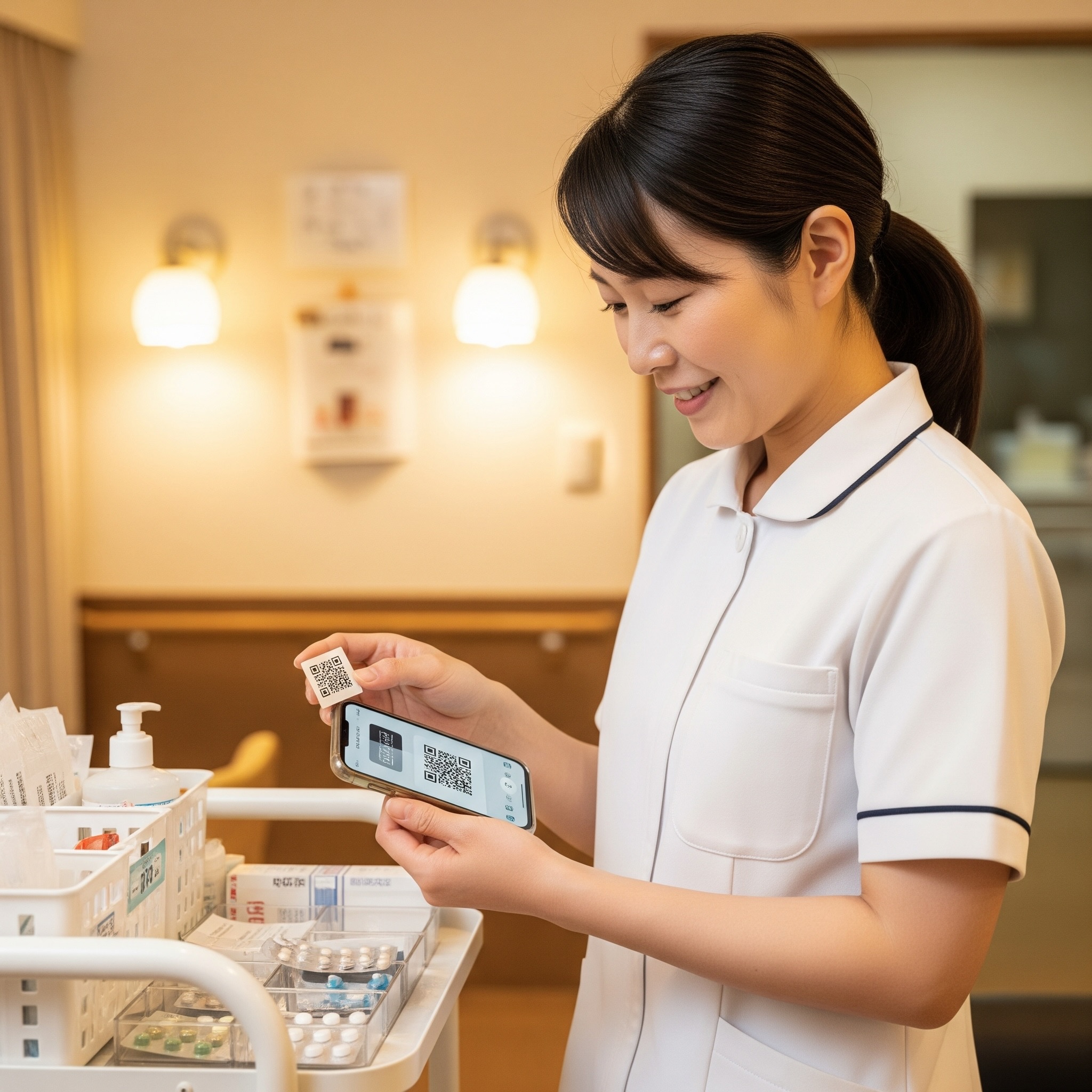 調剤明細書の電子版お薬手帳のQRコードをスマホでスキャンするだけで手間のかかる調剤情報を自動で登録。「違う薬」「違う人」「違う時間」のチェックを強力にサポート。6R確認作業の時間を大幅短縮。処方変更時の情報共有が自動化。服薬拒否や副作用の記録も簡単入力。